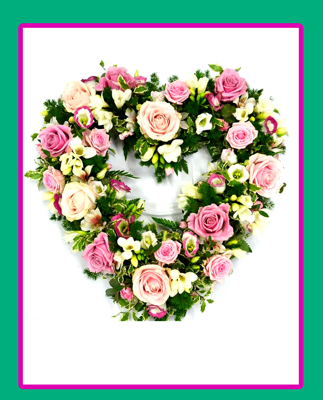 A beautifully arranged center-pieced heart of 35 pink and white Roses.