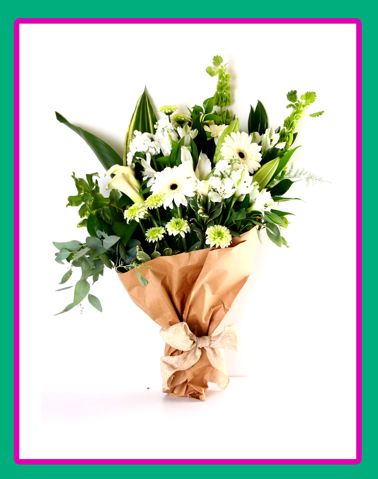 Красивый букет из белых гербер и белых хризантем, 15 штук.